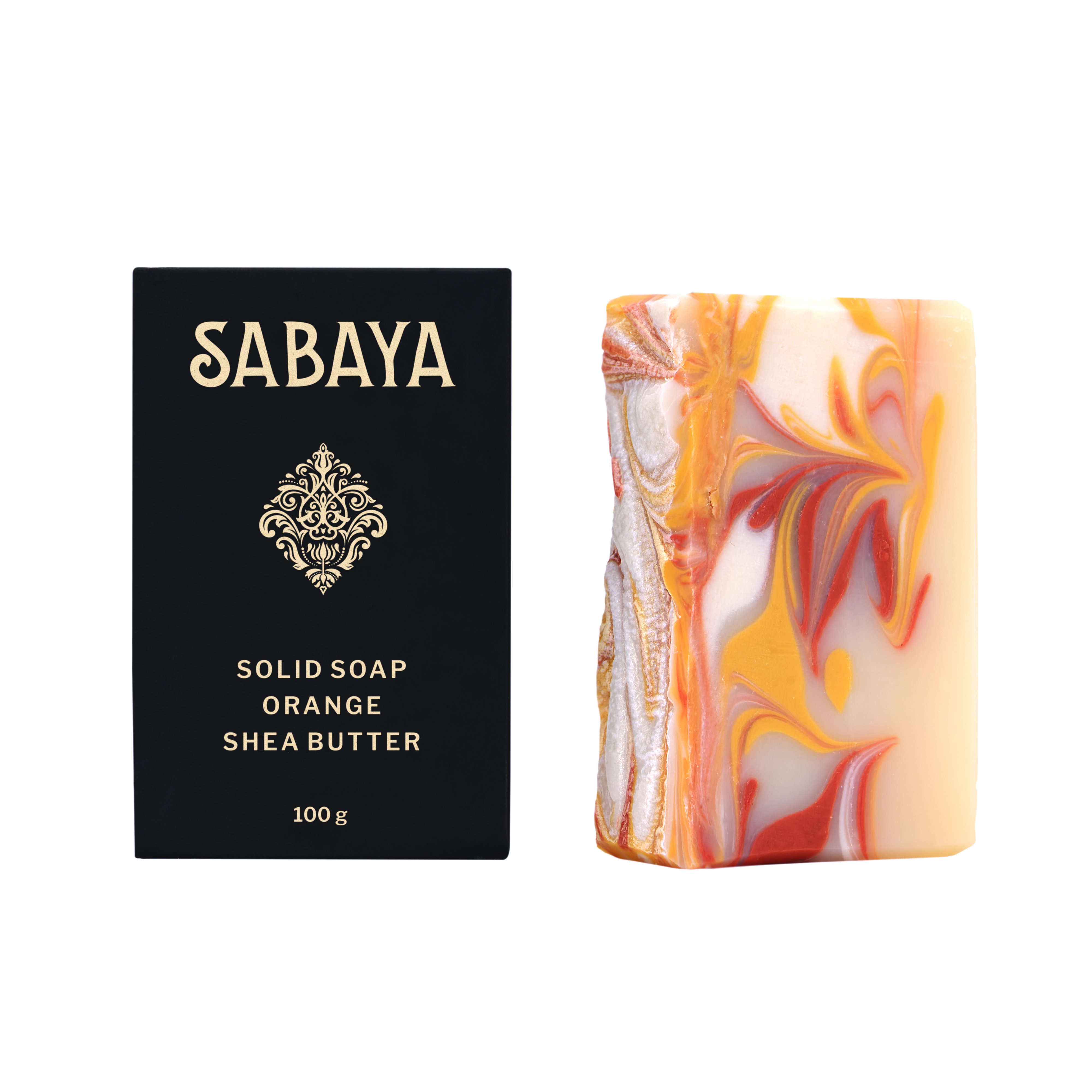 Složení: Kokosový olej, olivový olej, bambucké máslo, esenciální olej Pomeranč, přírodní minerální oxidy Ingredients: Sodium Cocoate, Aqua, Sodium Olivate, Citrus Aurantium Dulcis Oil, Butyrospermum Parkii Butter, CI 77491 (přírodní minerální oxid), CI 77492 (přírodní minerální oxid), *Limonene, *Linalool (*přírozená součást esenciálních olejů)